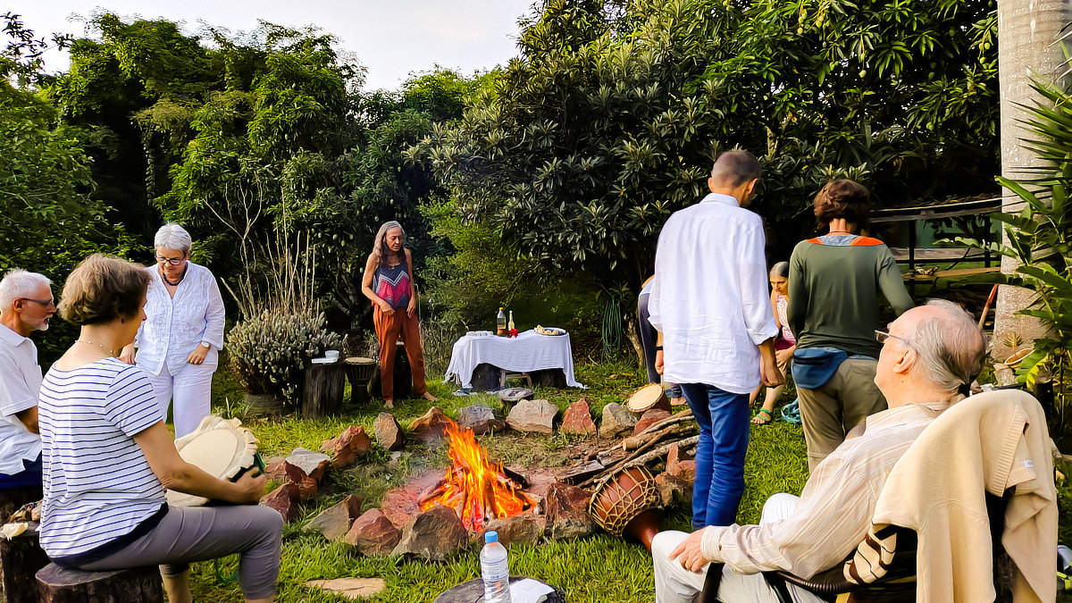 - Meditieren und Tanzen in der kleinen Open-Air Meditationshalle