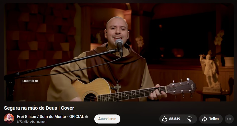 Wenn du je auf unseren sieben Europäischen Geistheilungstagen oder in der Casa de Dom Inacio warst - dann kennst du das herzerfrischende Lachen unseres geliebten Freundes Norberto. Immer wenn er auf der Bühne Gebete gesprochen und über die vielen Heilungen und die Arbeit der Geistigen Wesenheiten berichtet hat, dann hat er mit seinem Humor, seiner Lebensfreude und seinem großen Herzen so viele Menschen berührt. Noch bis vor wenigen Wochen ist er trotz körperlicher Beschwerden in die Casa gekommen, hat still im Strömungsraum gebetet und meditiert. Lieber Norberto: Du wirst uns hier fehlen - Dein Lachen, Deine Anekdoten im schwäbisch klingenden Sound der Deutschstämmigen Südbrasiliens, Dein berührendes Singen auf der Bühne. Wir wünschen Dir einen leichten, freudigen Aufstieg in die Geistige Welt – und begleiten Dich mit diesem Lied, das Du so gerne gesungen hast: Segura na mao de Deus (Lass dich von Gottes Hand führen). Hier in der Version von Frei Gilson. >>>> klick hier für den Song auf YOUTUBE <<<< oder klick auf das Bild unten, dann gelangst du auch zu YOUTUBE