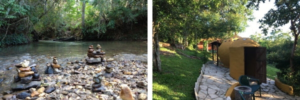 Ruhetag im Oasis de Luz. Genießen Sie ein Bad im Flüsschen oder eine reinigende Sitzung in der Bio-Dampfsauna im Freien. Vielleicht eine Tanzmeditation in der kleinen Open-Air Meditationshalle? Im Fernsehraum gibt es interessante spirituelle Filme, die Ihnen das Herz Brasiliens nahebringen. Überall laden Hängematten zum Verweilen ein und die Fruchtbäume sind stets eine süße Versuchung. Abends lädt Nishavda uns zu einer Feuer-Zeremonie mit Trommeln, Mantren und Gesängen ein. Bei klarem Nachthimmel sind die Sterne über dem Oasis de Luz eine wunderbare Erscheinung.